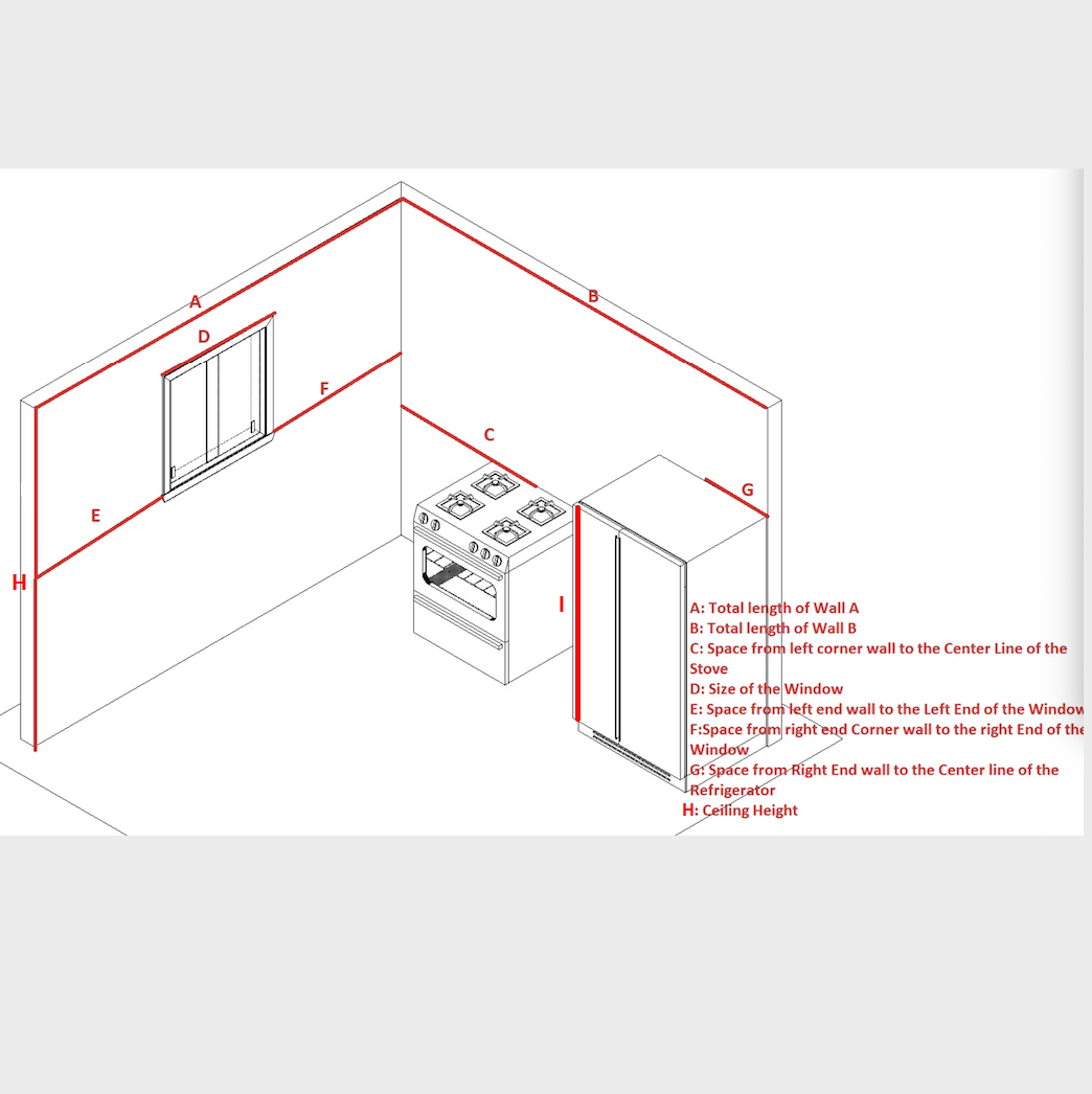 If You are not sure how to measure your kitchen,please feel free to check our Step by Step Guide Here Measure Your Kitchen.