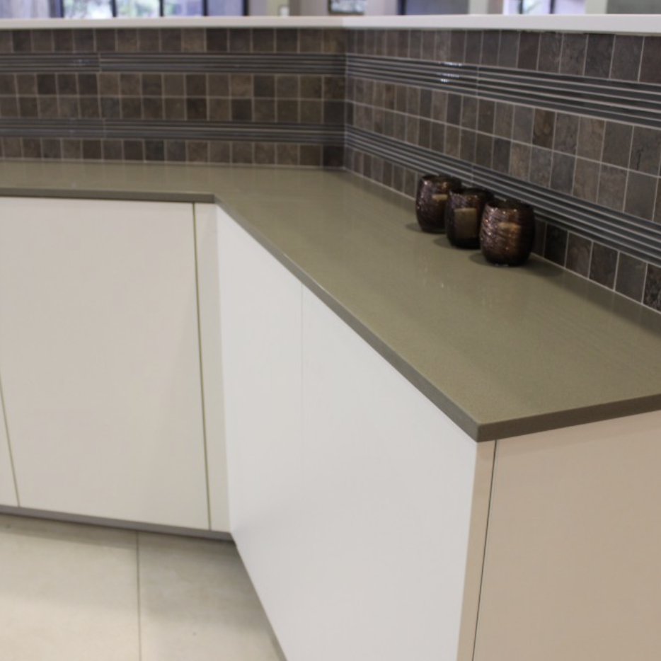 Airy Concrete offers a very intriguing texture and is the quintessential light gray quartz countertop.