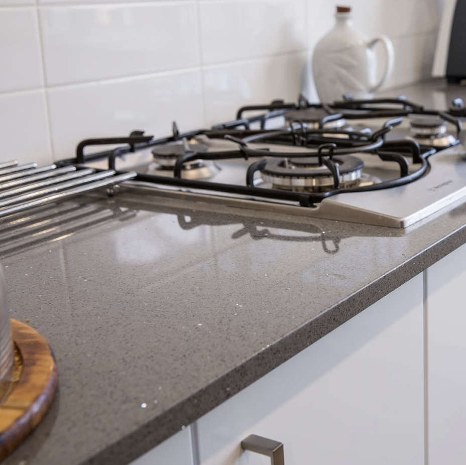 Of all grey quartz countertops, Crystal Gray is the one that is maybe the best quartz countertop type for combining with other surfaces in a kitchen.